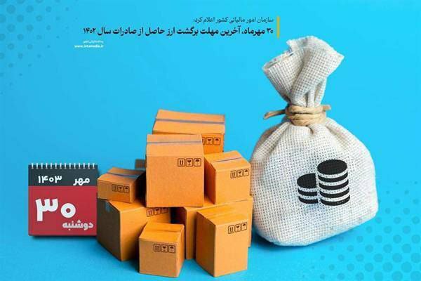 سازمان امور مالیاتی کشور اعلام کرد که 30 مهرماه، آخرین مهلت برای برگشت ارز حاصل از صادرات مربوط به هر پروانه صادراتی در سال 1402 است. این اقدام به منظور تسهیل در فرآیندهای مالیاتی و اقتصادی صادرکنندگان انجام میشود و صادرکنندگان باید تا این تاریخ نسبت به بازگشت ارزهای خود اقدام و پیگیری کنند.