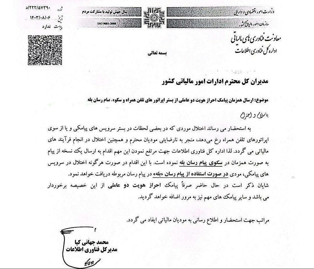 با این اقدام، در صورت بروز هرگونه اختلال در سرویسهای پیامکی، مودیان محترم قادر خواهند بود پیامها را از طریق پیامرسان بله دریافت کنند، که این امر بهبود فرآیندهای مالیاتی و افزایش دسترسی به اطلاعات مهم را به دنبال خواهد داشت.