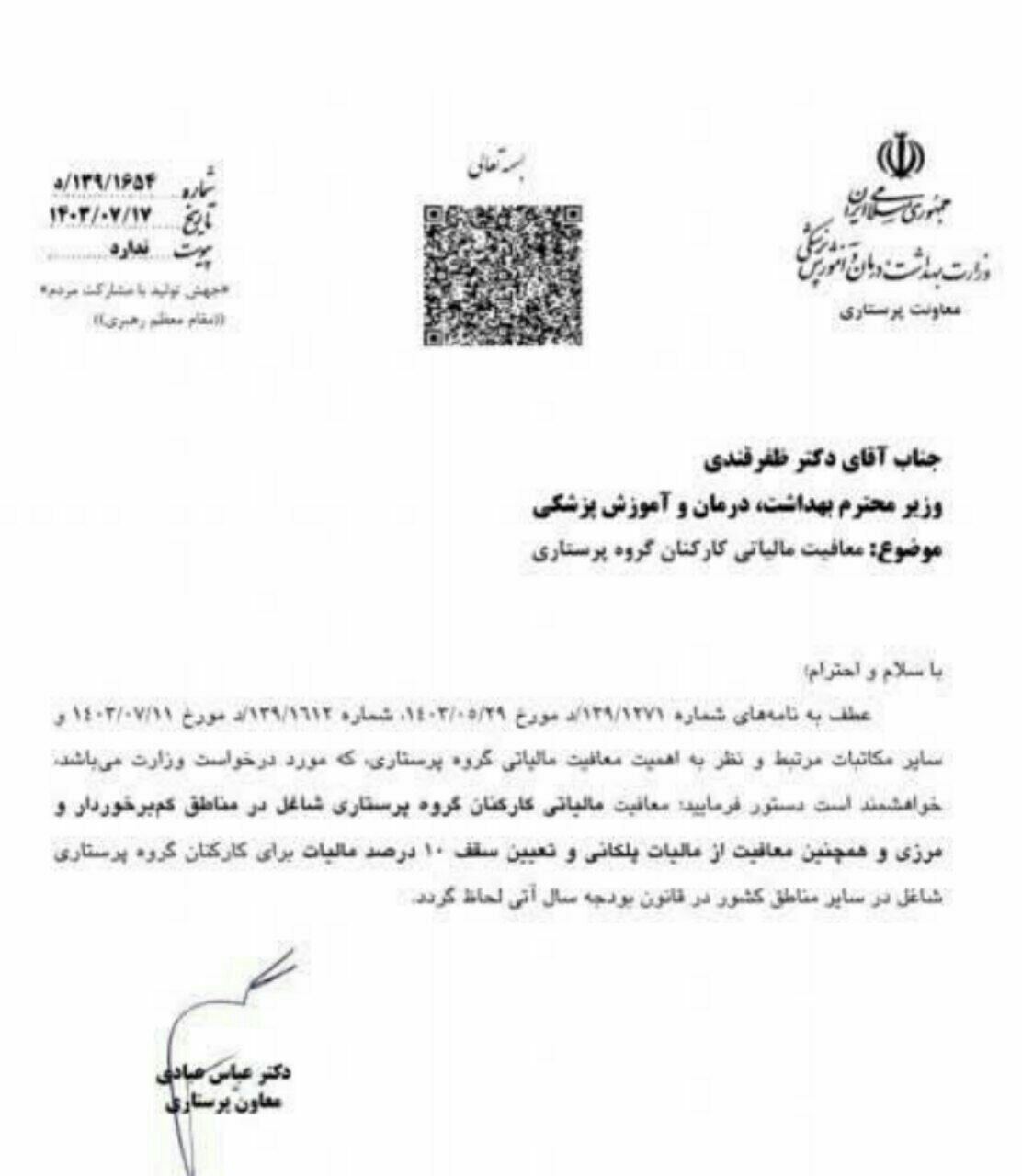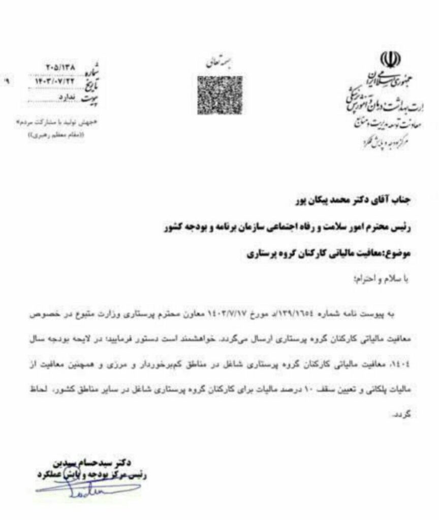 این اقدام معاون پرستاری وزارت بهداشت نشان‌دهنده توجه به وضعیت پرستاران در مناطق محروم و مرزی است. معافیت مالیاتی کامل می‌تواند به بهبود شرایط مالی و رفاهی این دسته از پرستاران کمک کند. همچنین، ثابت نگه‌داشتن نرخ مالیات برای سایر پرستاران به‌ویژه در شرایط اقتصادی فعلی، می‌تواند فشار مالی بر آن‌ها را کاهش دهد. امیدواریم که این درخواست‌ها مورد توجه قرار گیرند و در نهایت به بهبود شرایط کاری و معیشتی پرستاران منجر شوند.