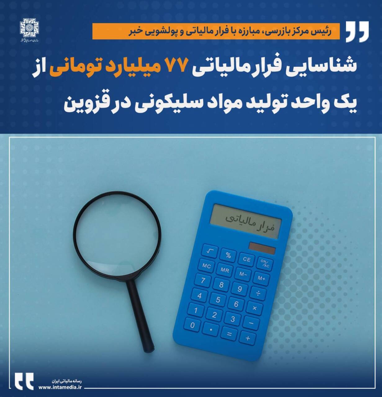 🔹 رئیس مرکز بازرسی، مبارزه با فرار مالیاتی و پولشویی سازمان امور مالیاتی کشور اعلام کرد: یک واحد تولید مواد سلیکونی در استان قزوین به دلیل عدم پرداخت مالیات در سالهای ۱۳۹۸ تا ۱۴۰۱ شناسایی شد.
