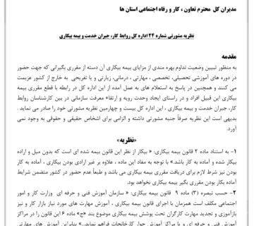 نظریه مشورتی شماره ۲۴ اداره کل روابط کار، جبران خدمت و بیمه بیکاریBehinehpardazanاکتبر 13, 2024اداره کل بیمه بیکاری بیست و چهارمین نظریه مشورتی خود را در رابطه با شرایط تداوم بهرهمندی از مزایای بیمه ... ادامه مطلب