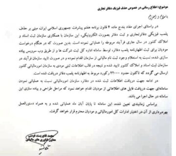 ابلاغیه 1403/7/7 معاون فناوری های مالیاتی در خصوص اطلاع رسانی حذف فیزیکی دفاتر تجاریBehinehpardazanاکتبر 12, 2024اقدام سازمان امور مالیاتی برای راهاندازی یک سامانه جدید که به مودیان اجازه میدهد فایلهای اطلاعاتی خود را به صورت ... ادامه مطلب