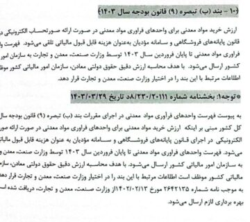 مشمولیت واحدهای فرآوری مواد معدنی در قانون پایانههای فروشگاهی و سامانه مؤدیانBehinehpardazanژانویه 30, 2025بر اساس بند (ب) تبصره (۹) قانون بودجه سال ۱۴۰۳، ارزش خرید مواد معدنی برای واحدهای فرآوری مواد معدنی، در ... ادامه مطلب