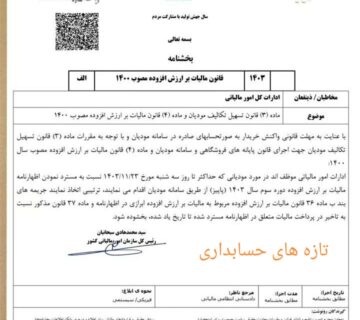 مهلت ارسال اظهارنامه مالیات ارزش افزوده دوره پاییز 1403 تمدید شد!Behinehpardazanژانویه 21, 2025به اطلاع مودیان عزیز میرسانیم که بر اساس اطلاعیه رسمی سازمان امور مالیاتی، مهلت ارسال اظهارنامههای مالیات ارزش افزوده برای ... ادامه مطلب