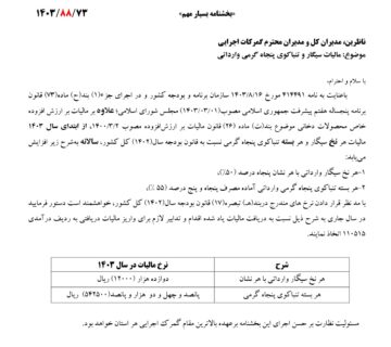 افزایش مالیات بر سیگار و تنباکوی وارداتی از ابتدای سال ۱۴۰۳Behinehpardazanنوامبر 27, 2024بر اساس مصوبه جدید سازمان امور مالیاتی، از ابتدای سال ۱۴۰۳ مالیات هر نخ سیگار وارداتی و هر بسته تنباکوی ... ادامه مطلب