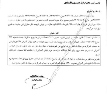 لغو دریافت مالیات جدید از واردات؛ تنفس دوباره برای بازرگانانBehinehpardazanنوامبر 27, 2024اختلاف در اجرای قانون مربوط به وصول مالیات ارزش افزوده جدید از واردات با ورود معاونت قوانین مجلس شورای اسلامی ... ادامه مطلب