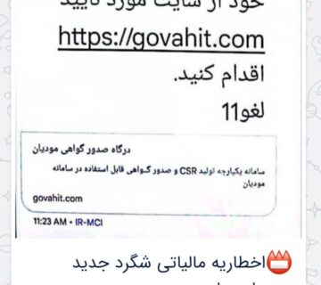 اخطاریه مالیاتی شگرد جدید مجرمان سایبریBehinehpardazanنوامبر 10, 2024شهروندان دقــت داشتــه باشــند، پیامهــای دریافتی از شمــارههای شخصی با عنوان “گواهی امضای الکترونیکی” اخطاریه مالیاتــی، جعلی و برای سرقت ... ادامه مطلب