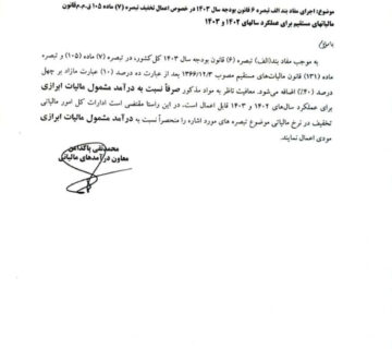 اطلاعیه معاونت درآمدهای مالیاتی درباره تخفیفهای مالیاتی برای سالهای ۱۴۰۲ و ۱۴۰۳Behinehpardazanاکتبر 2, 2024معاونت درآمدهای مالیاتی کشور با صدور نامهای به ادارات کل امور مالیاتی، جزئیات جدیدی را در خصوص اعمال تخفیفهای مالیاتی ... ادامه مطلب