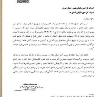 ابلاغیه مهم مالیاتی: دفاتر تجاری از این پس فقط الکترونیکیBehinehpardazanآوریل 22, 2025📅 تاریخ انتشار: ۲ اردیبهشت ۱۴۰۴📝 منبع: سازمان امور مالیاتی کشور در راستای اجرای مفاد بند “چ” ماده ۴ قانون ... ادامه مطلب